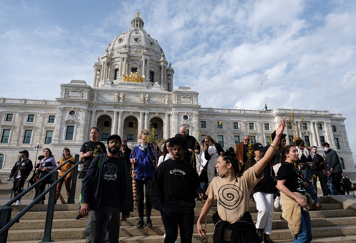 IN THE RIVER is a public performance by artist Karthik Pandian, commissioned by Midway Contemporary Art for its Off-Site program. Produced in collaboration with Mike Forcia and an ensemble of Twin Cities-based musicians, dancers, media workers, and activists, IN THE RIVER braids Indigenous prophecy, Black music, and stories of survival to challenge the colonial monument’s claim on space and time.
