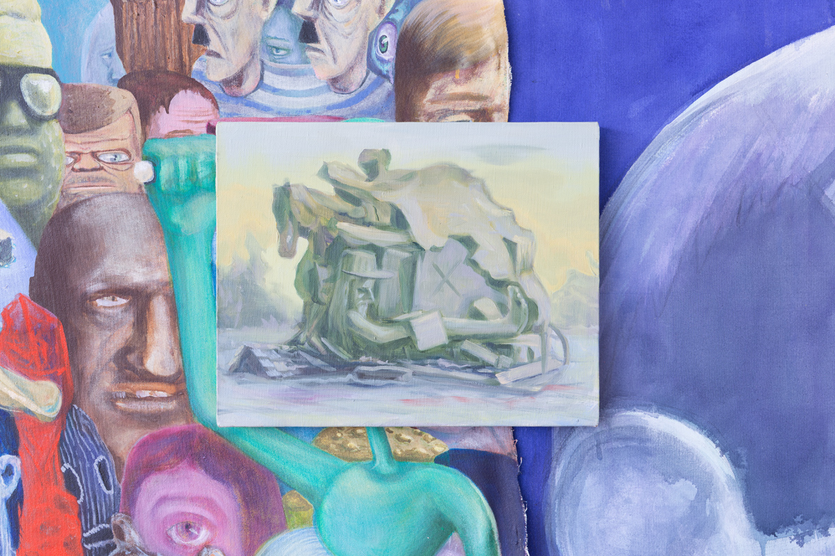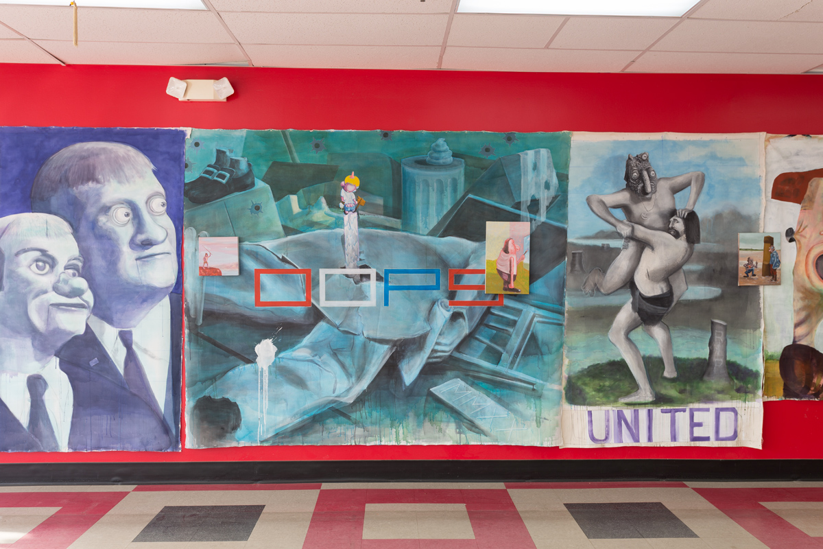 St. Paul-based artist Bruce Tapola presents Major Bummer, an exhibition featuring a new series of paintings and sculptures made during the pandemic. This Midway Off-Site project is located in a store front space at the Texa-Tonka Shopping Center, a mid-century retail mall located off of Minnetonka Boulevard in St. Louis Park. The space formerly housed the legendary Ax-Man Surplus Store.