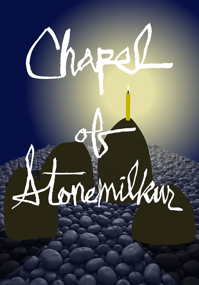 The Chapel of Stonemilkur is a large-scale immersive installation where visitors remove their shoes and step onto a 20’x20’ floor of river stones, cushioned by a felt mat. Four massive boulders anchor the space, juxtaposing soft and hard. Ambient lighting and resonant drone music charge the atmosphere and heighten affective experience. Over the exhibition’s duration, a 360-degree mural on primed cloth will be developed, then removed and archived. Handmade beeswax candles will be available for visitors to light and place on a boulder, as offerings or intentions to the greater-than-human spirit, echoing rituals of sacred space.